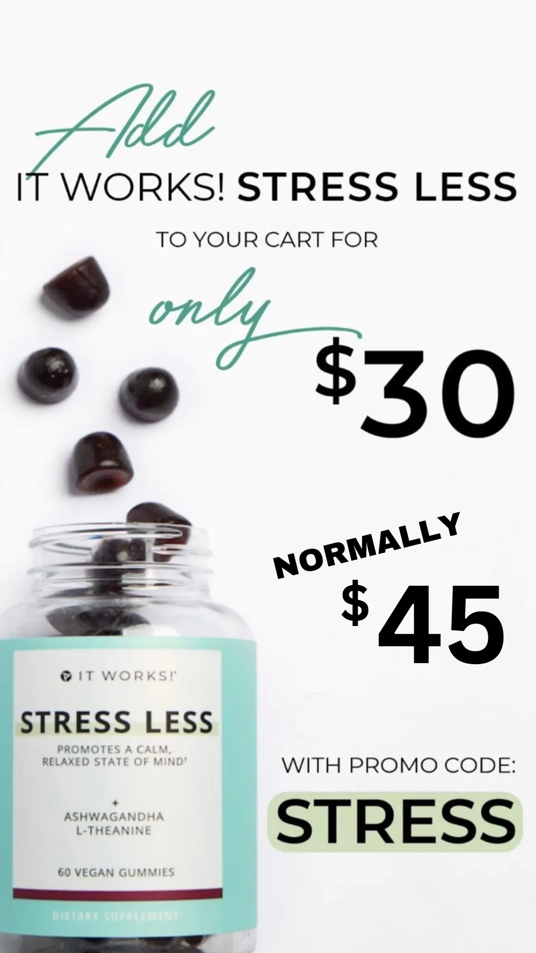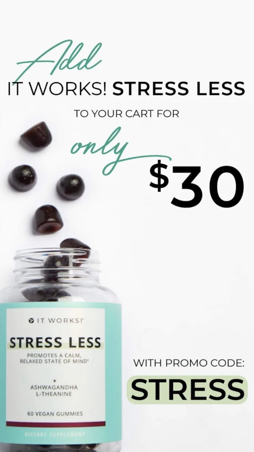 Enjoy a calm, more relaxed state of mind with IT WORKS! Stress Less! Combat the stressors of everyday life with key Ingredients such as Sensoril® shwagandha, L-Theanine, and Lemon Balm Extract.